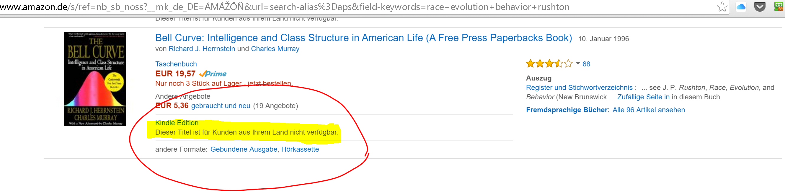 - Rasse, Evolution und Verhalten (J. Philippe Rushton) erstaunlicherweise bei Amazon nicht zensiert. Es scheint die volle Version zu sein