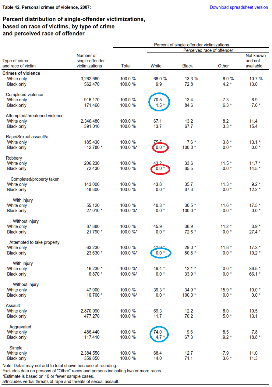Vergewaltigungen, Raubüberfälle Schwarzer durch Weiße (fast) NULL? US Regierungsstatistiken!