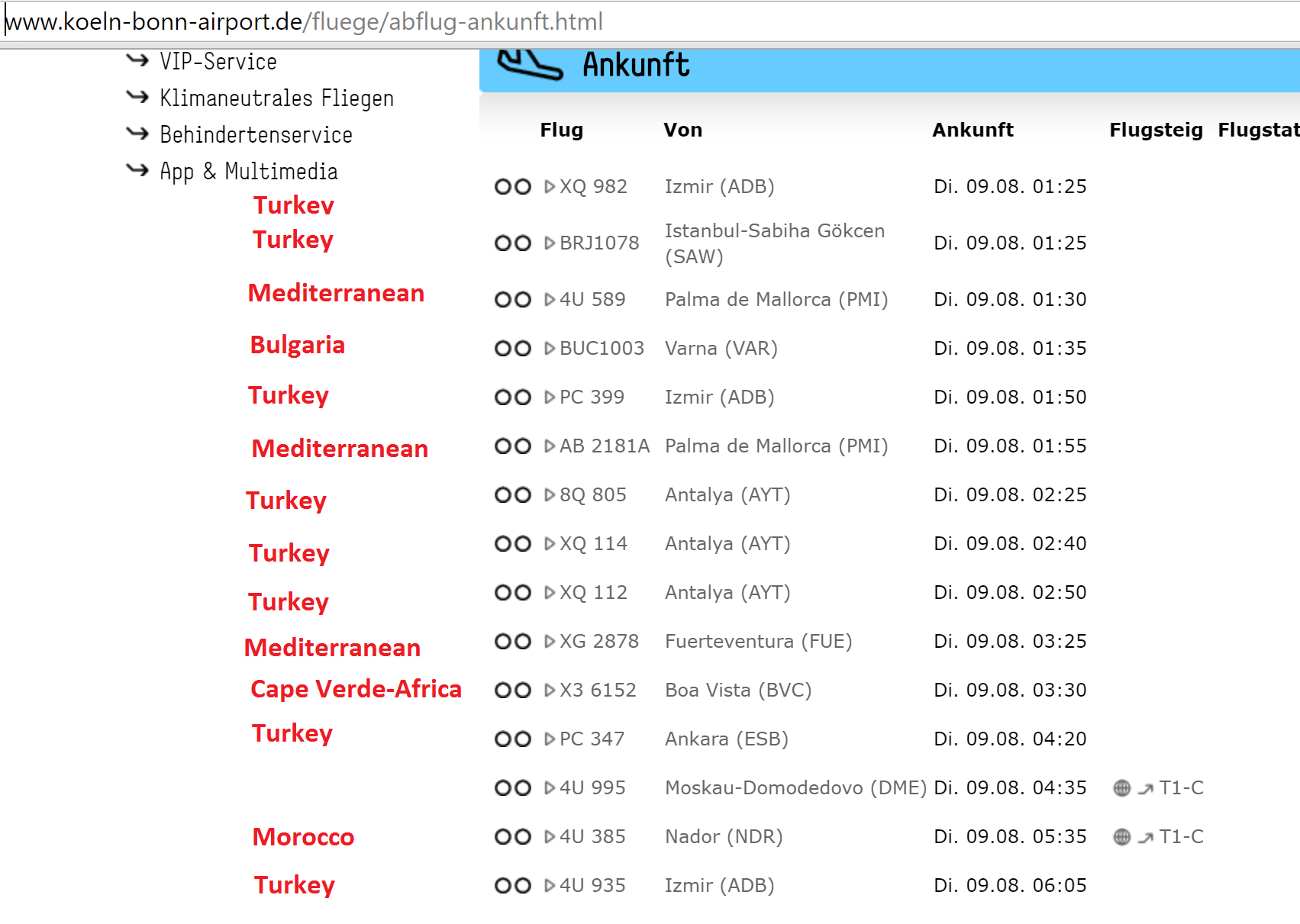 Alternative Blogs erwähnten dass massenweise Nachtflüge aus der Türkei in Köln Bonn eintrudeln. (siehe nach den Bildern)