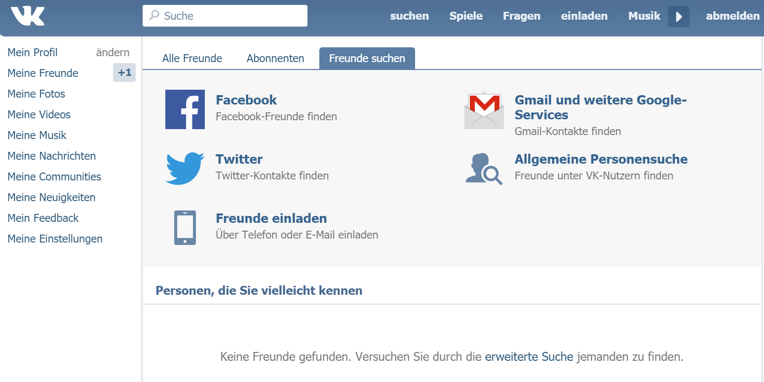 Sie können innerhalb von VK.com Ihre Freunde von facebook hier finden. Aber, ich denke, nur wenn diese auch auf vk sind. Also weitersagen. Den Aleitungen folgen bei